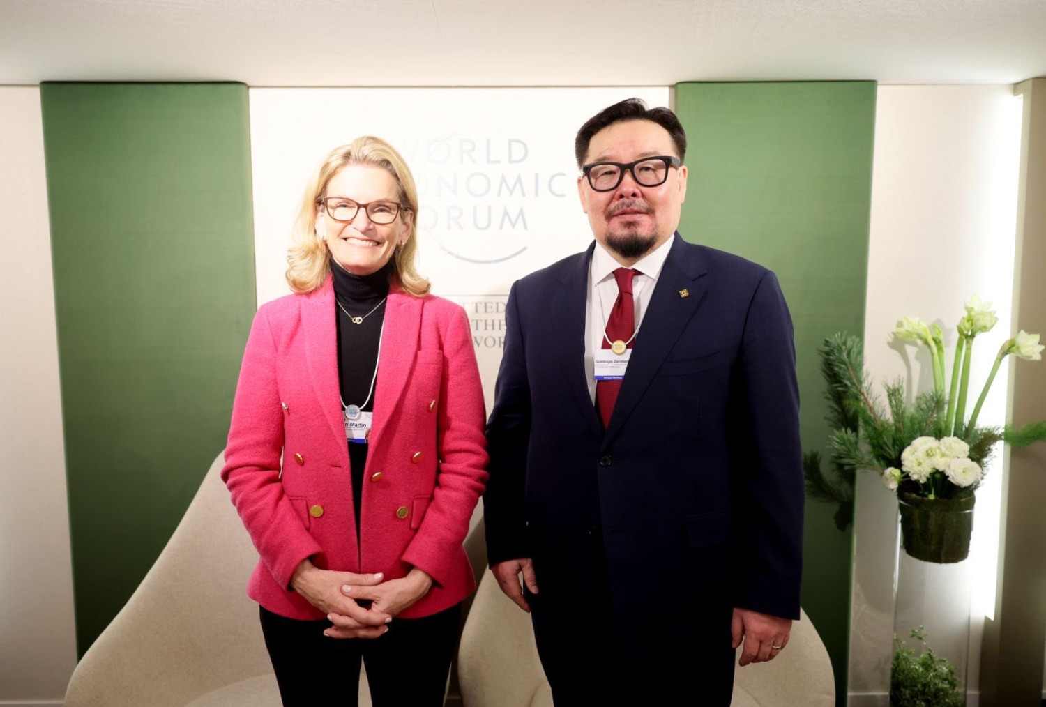 Швейцарын Давос хотноо болж буй Дэлхийн эдийн засгийн чуулга уулзалтад оролцож байгаа Монгол Улсын Ерөнхий сайд Г.Занданшатар Олон улсын цахилгаан холбооны байгууллагын (ОУЦХБ) Ерөнхий нарийн бичгийн дарга, хатагтай Дорийн Богдан Мартыг хүлээн авч уулзлаа.
