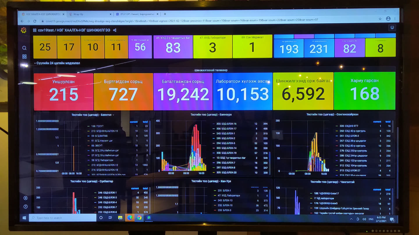 Өнөөдрийн байдлаар /2021.02.12/ нийслэлийн есөн дүүрэгт шинжилгээ авах 87 түр цэг, 191 явуулын багт 1414 эмч, эмнэлгийн мэргэжилтэн ажиллаж байна. Явуулын багийн шинжилгээ авах үйл явцыг камераар шууд хянаж, GPS-ээр байршлыг нь тодорхойлж байгаа юм. Шинжилгээний сорьц тээвэрлэх автомашинуудыг мөн уг технологийн дэвшлээр хянан ажиллаж байна.