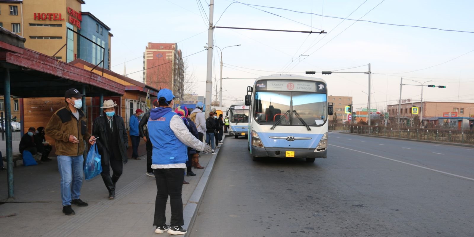 Гамшгаас хамгаалах бүх нийтийн бэлэн байдлын зэрэгт шилжсэн хугацаанд нийтийн тээврийн үйлчилгээний цагийн хуваарийг тусгай горимд шилжүүлсэн. Мөн нийтийн тээврээр зөвхөн хязгаарлалт тогтоохгүй төрийн байгууллага, хуулийн этгээдийн ажилтан, алба хаагчдыг халдвар хамгааллын дэглэмийг мөрдүүлэн зорчуулах, хяналт тавих ажлыг зохион байгуулж байна. Өнөөдөр буюу дөрөвдүгээр сарын 23-нд хөдөлгөөнт болон суурин 17 байршилд Авто тээврийн хяналтын 17 улсын байцаагч, 43 байршилд Нийтийн тээврийн үйлчилгээний газрын 52 албан хаагч, 116 байршилд “Сити баз консалтинг” ХХК, “Зорчигч тээврийн нэгтгэл”, “Зорчигч тээвэр гурав” ОНӨААТҮГ-ын 175 шалгагч ажиллаж, иргэдийг халдвар хамгааллын дэглэмийг мөрдүүлэн зорчуулж, хяналт тавьж буй юм.