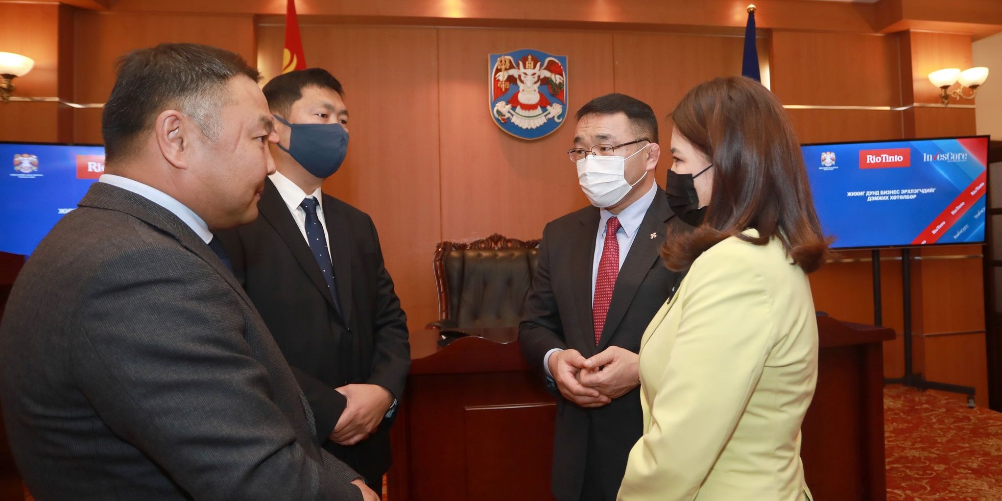 “Рио Тинто” групп “Ковид-19” цар тахлын эсрэг сайн дурын сангаасаа 2.9 тэрбум төгрөгийн эх үүсвэр гарган, бичил, жижиг, дунд болон гарааны бизнес эрхлэгчдийн үйл ажиллагааг тогтвортой явуулахад дэмжлэг үзүүлэх хөтөлбөр хэрэгжүүлэх гэж байна. Тус хөтөлбөрийг “Инвескор” санхүүгийн байгууллагатай хамтран хэрэгжүүлэх бөгөөд хөтөлбөрийн нээлтийн үйл ажиллагаа өнөөдөр боллоо. Арга хэмжээнд Нийслэлийн Засаг дарга бөгөөд Улаанбаатар хотын Захирагч Д.Сумъяабазар, “Рио Тинто” группийн Монгол дахь үйл ажиллагаа хариуцсан захирал Х.Амаржаргал, “Инвескор” санхүүгийн байгууллагын гүйцэтгэх захирал Д.Баясгалан болоод холбогдох албан тушаалтнууд оролцсон юм.