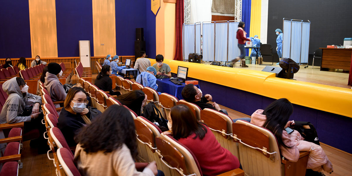 -Манай сургууль Сүхбаатар дүүргийн Эрүүл мэндийн төв, ХӨСҮТ болон сургуулийнхаа Оюутны холбоотой хамтран оюутнууд болон багш ажилчдадаа чиглэн ажиллаж байна. Эхний байдлаар судалгаа авахад оюутнууд сургууль дээрээ вакцинд хамрагдах хүсэлт их ирсэн. Өнөө өглөөнөөс дархлаажуулалтын түр цэг ажиллаж эхэлсэн. Маш их ачаалалтай, оюутнууд маань идэвхтэй хамрагдаж байна. Энэ нь спортын тэмцээн уралдаан зохион байгуулахад III тун хийлгэсэн байхыг шаардаж байгаатай ч холбоотой гэж ШУТИС-ийн оюутны холбооны тэргүүн И.Эрдэнэбүрэн хэллээ.