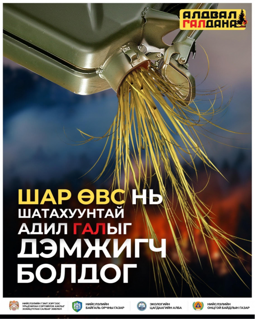 Тэгэхээр иргэдэд хандаж хэлэхэд, зуслангийнхаа өнжмөл шар өвсийг хадаж аваад, таглаа бүхий зориулалтын саванд шатаагаарай. Мөн хуурайшилтын үед их, бага хэмжээний гал түлэх, гагнуур хийхийг хатуу хориглодог гэдгийг сануулъя. Ууланд аялах, агаар салхинд гарахдаа унтраалгүй хаясан, дутуу унтраасан чүдэнз, тамхины ишнээс болж олон удаагийн гал түймэр гарч, байгаль орчныг сүйтгээд зогсохгүй, хувь хүн, улс оронд их хэмжээний эдийн засгийн хохирол учруулж байсныг хэлэхэд илүүдэхгүй болов уу. Энэ бүхнийг хот газрын соёлд суралцсан иргэд бүрэн дүүрэн ойлгож байгаа гэдэгт итгэлтэй байна. Нийслэлд ахуйн гал түймэр зонхилж байна. Залгасан бол салга, салгасан бол шалга. Иргэн та өөрийгөө болон гэр бүлээ хамгаалж чадах юм бол эх орноо хамгаалж чадна. Өөрийгөө хүндэлж чадвал бусдыг хүндэлж чадна гэдгийг хотын иргэд бид харуулах хэрэгтэй.