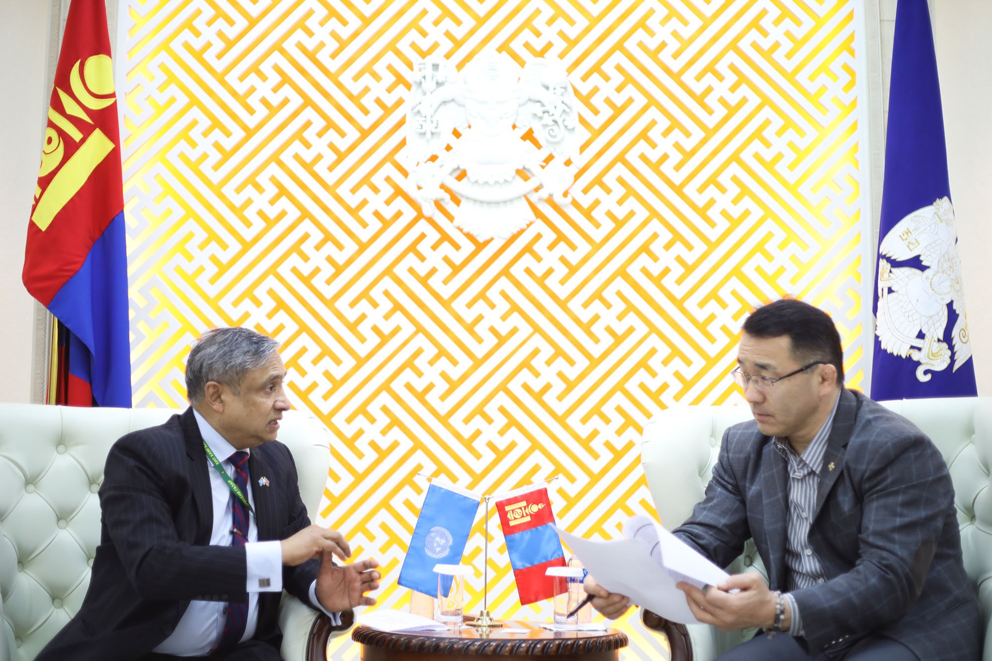 Нийслэлийн Засаг дарга бөгөөд Улаанбаатар хотын Захирагч Д.Сумъяабазар өнөөдөр НҮБ-ын Монгол дахь Суурин зохицуулагч Тапан Мишраг хүлээн авч уулзлаа.