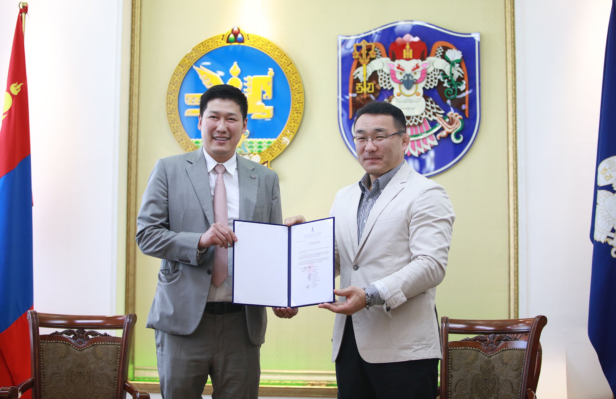 Мөн үеэр Хотын даргад МҮОХ-ны дээд шагнал "Алтан-Од" одонг гардуулан өглөө. "Алтан-Од" одон нь биеийн тамир, спортыг хөгжүүлэх, Олимпын хөдөлгөөнийг сурталчлан дэлгэрүүлэх үйл хэрэгт хувь нэмэр оруулж, амжилт гаргасан хүмүүст МҮОХ-ны Гүйцэтгэх зөвлөлийн шийдвэрээр гардуулдаг дээд шагнал билээ. МҮОХ-ны ерөнхийлөгч Б.Баттүшиг “Нийслэлийн зүгээс спорт, олимпизмыг хөгжүүлэх үйлсэд хувь нэмэр оруулж, олон ажлыг хийж, хэрэгжүүлж байгаа тул энэхүү одонг Хотын даргад гардуулан өгч байна” гэсэн юм.