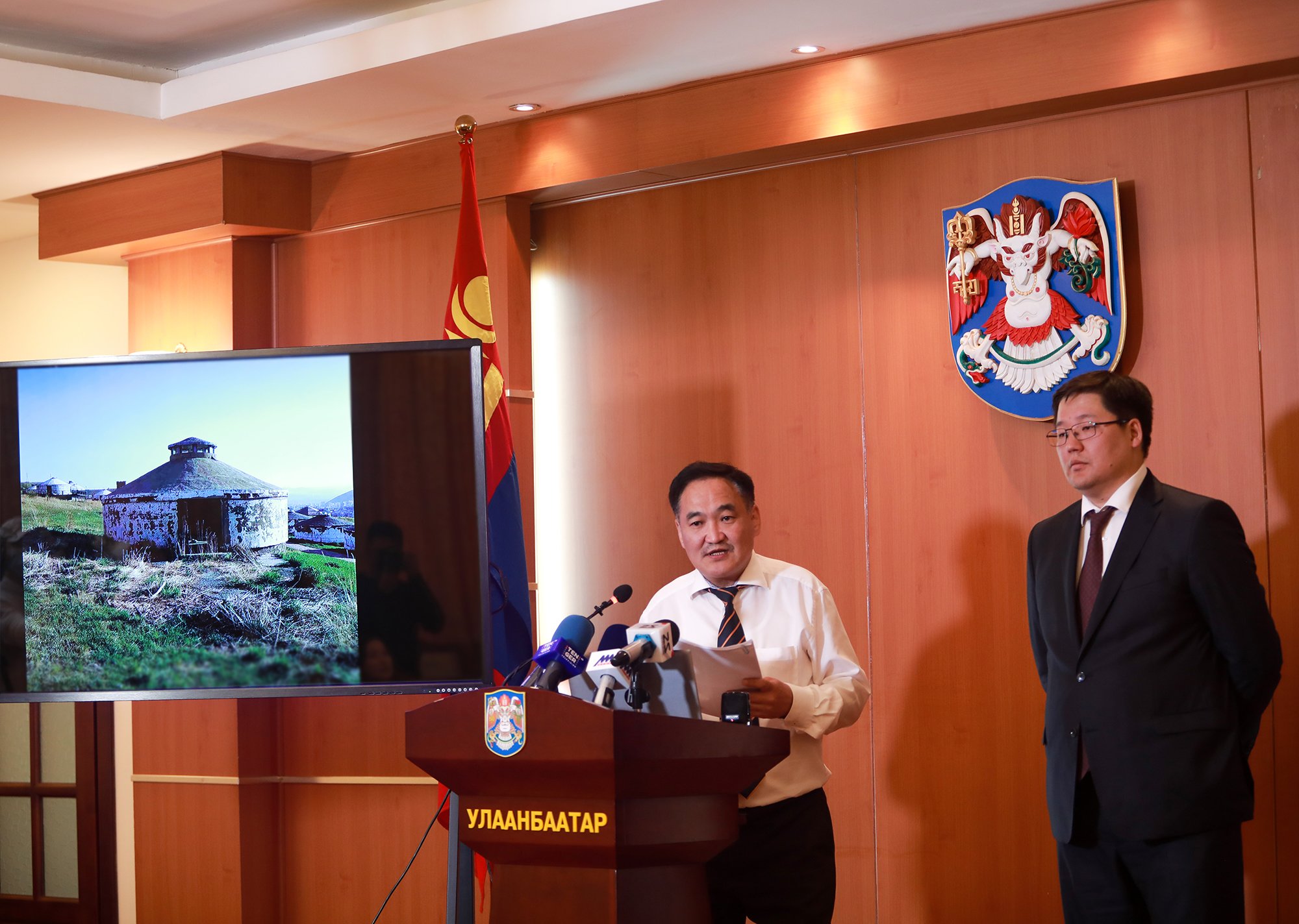 Нийслэлийн Засаг даргын А/740 тоот захирамж гарч, Дархан цаазат Богдхан уулын тэнцвэрт байдал, ой, ургамалд сөрөг нөлөөтэй байгууламжуудыг буулгасан. Тухайлбал, Хан-Уул дүүргийн 11 дүгээр хорооны нутаг Ар Зайсангийн гудамжинд байрлах хийц бүтээцэд нь ан цав, цууралт үүсэж, ноцтой эвдэрч гэмтсэн барилга байгууламжуудыг албадан буулгасан юм. Олон жилийн өмнө барьсан 49 шавар гэрийг буулгаж, хогийг ачих гэтэл тус гэрийг барьсан компанийн зүгээс хүсэлт гаргасан тул түр харзнасан боловч компани хогийг ачиж зөөвөрлөөгүй төдийгүй хууль зөрчсөн үйлдлээ өмгөөлсөн мэдээллийг олон нийтэд цацсан. Тиймээс өнөөдөр Нийслэлийн Засаг даргын Захиргаа, хууль эрх зүйн асуудал хариуцсан ахлах зөвлөх Д.Мөнх-Эрдэнэ, Нийслэлийн Мэргэжлийн хяналтын газрын дэд дарга С.Даваасүрэн нар хэвлэлийн хурал хийж, дараах мэдээллийг өглөө.
