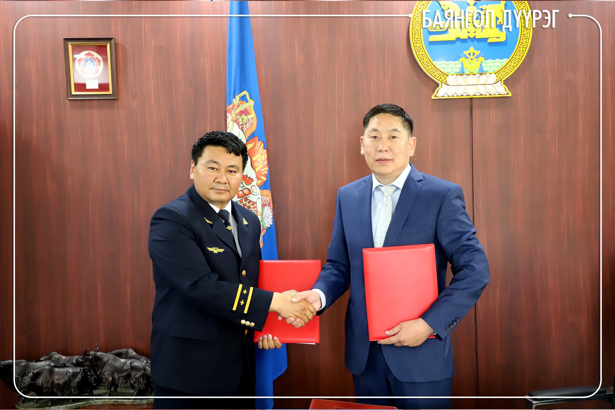 Баянгол дүүргийн Засаг дарга Ө.Сумъяабаатар өнөөдөр дүүргийн Засаг даргын 2020-2024 оны үйл ажиллагааны хөтөлбөрт тусгагдсан “Баянгол-Залуудын хөгжил” арга хэмжээг хэрэгжүүлэх төслийн хүрээнд Улаанбаатар төмөр замын Политехник коллежийн захирал Ё.Бямбатогтохтой 3 жил хамтран ажиллах Хамтын ажиллагааны санамж бичигт гарын үсэг зурлаа.