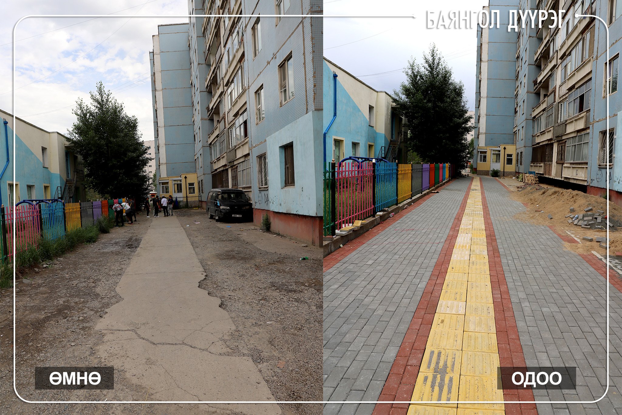 - БГД, 6-р хороо, 98-р цэцэрлэгийн ард талд тус тус явган хүний зам тавилаа.