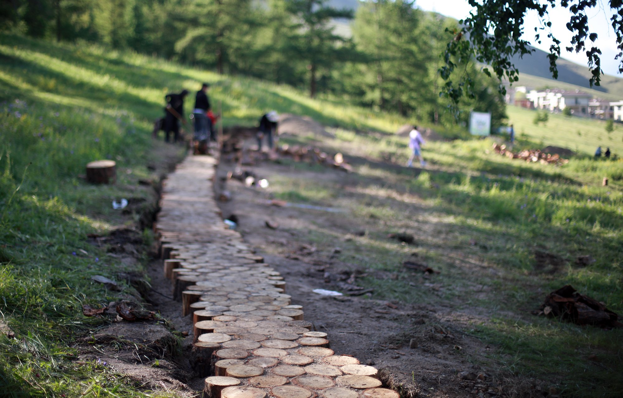 Дугуй цагаан орчмыг ойн цэвэрлэгээнээс гарсан моддыг ашиглан тохижуулж байна