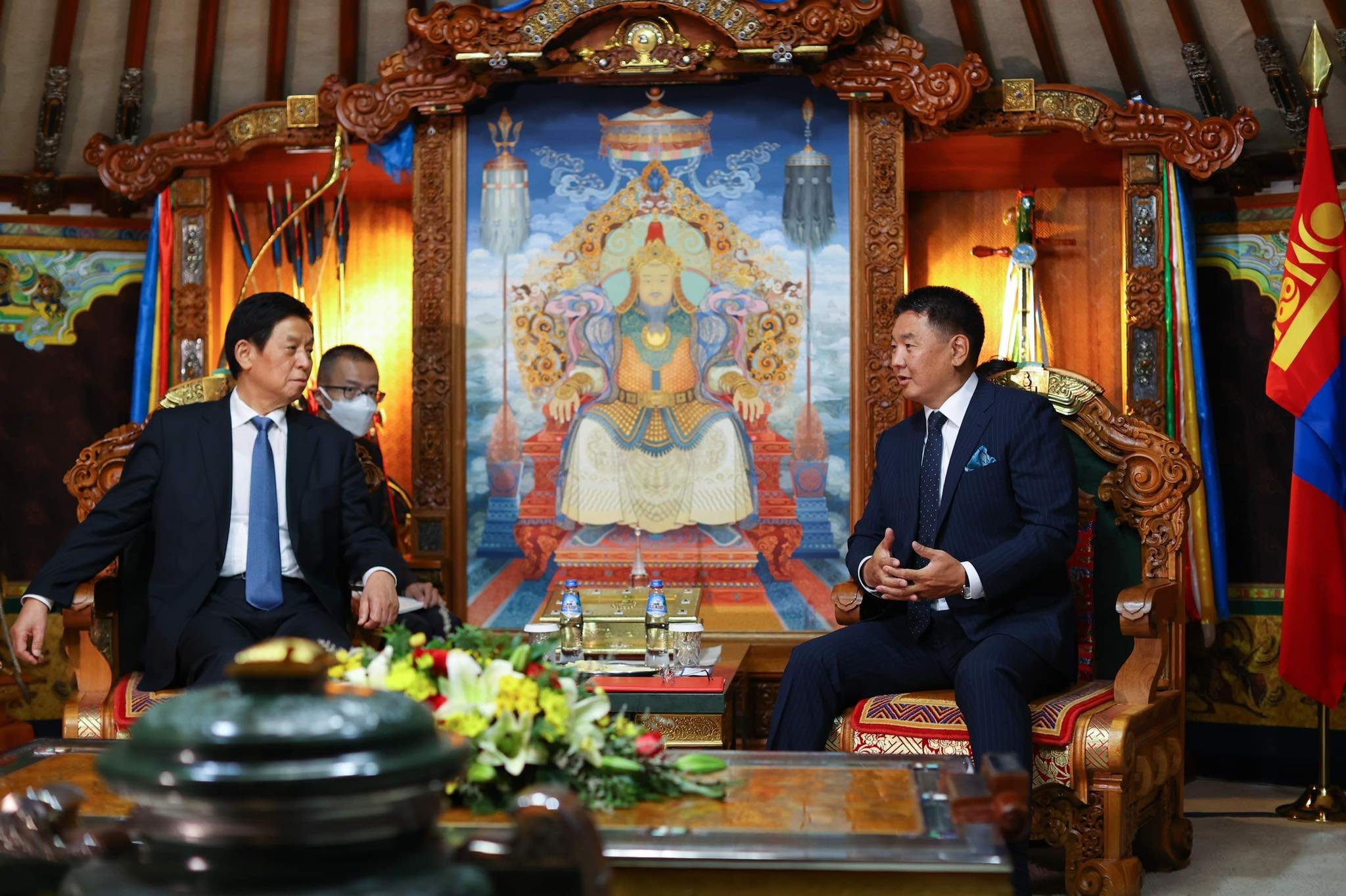 Монгол Улсын Ерөнхийлөгч Ухнаагийн Хүрэлсүхэд БНХАУ-ын Бүх Хятадын Ардын Төлөөлөгчдийн Их Хурлын Байнгын хороо /БХАТИХ/-ны дарга Ли Жаньшу 2022 оны 09 дүгээр сарын 12-ны өдөр бараалхав.