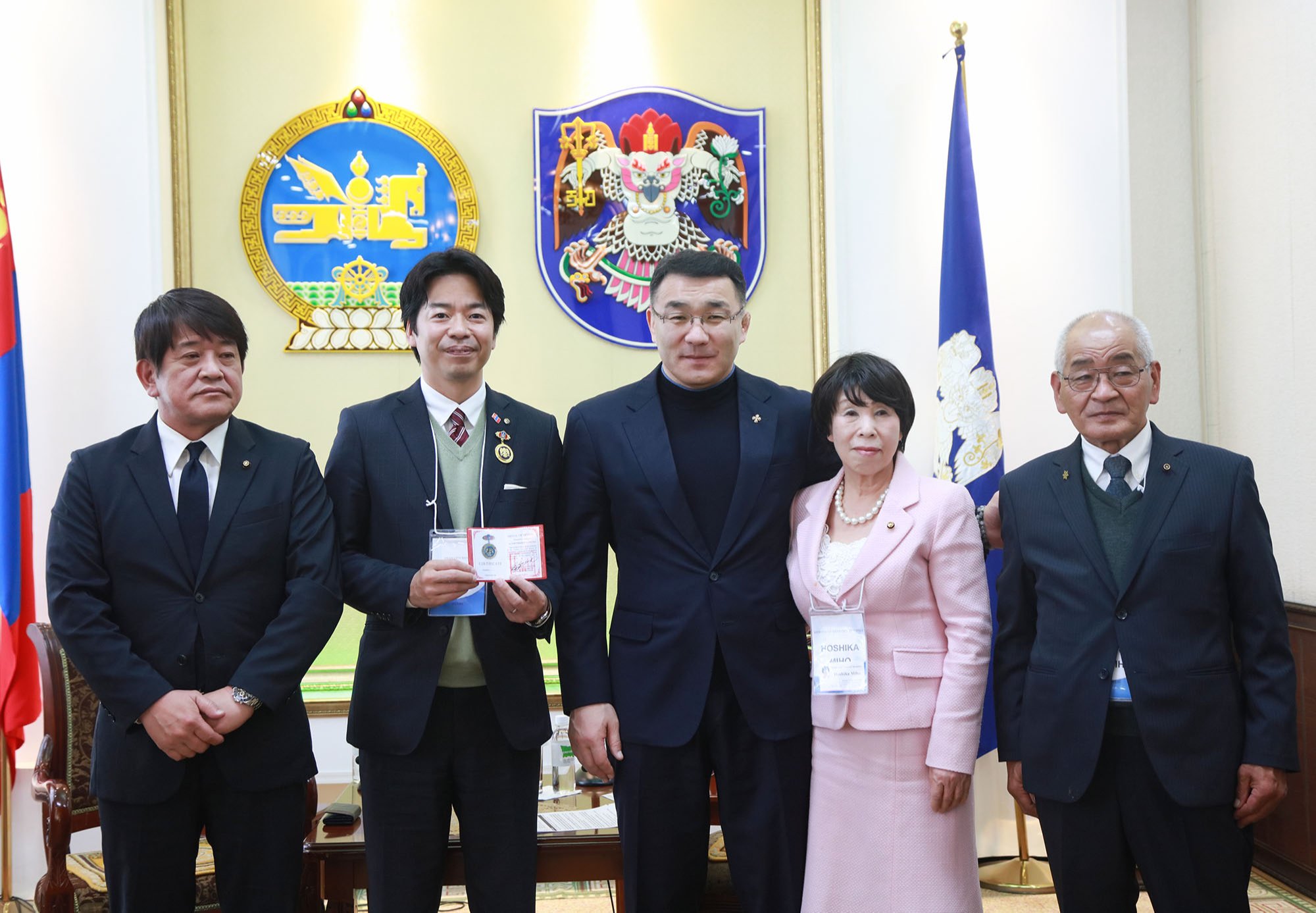 Түүнчлэн Улаанбаатар болон Анан хот хоорондын харилцаа, хамтын ажиллагааг өргөжүүлэн хөгжүүлэхэд хүчин чармайлт гаргаж, үнэтэй хувь нэмэр оруулсан Анан хотын дарга Омотэхара Тацүмаг Нийслэлийн хүндэт тэмдгээр шагнав.