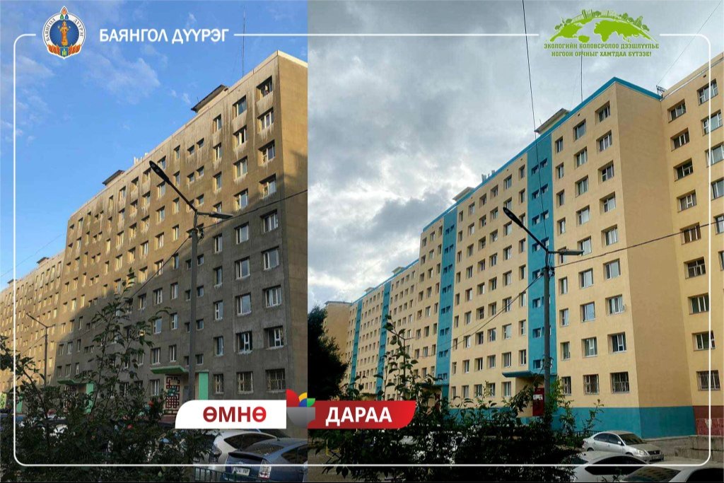 БГД-ИЙН 5, 8, 9, 13, 14 ДҮГЭЭР ХОРООНЫ 7 БАЙРАНД ХИЙСЭН ФАСАД, ДУЛААЛГЫН АЖИЛ ДУУСЛАА