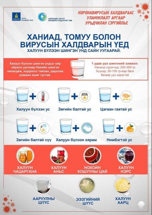 Ханиад, томуу болон вирусын халдварын үед халуун бүлээн шингэн унд сайн уугаарай