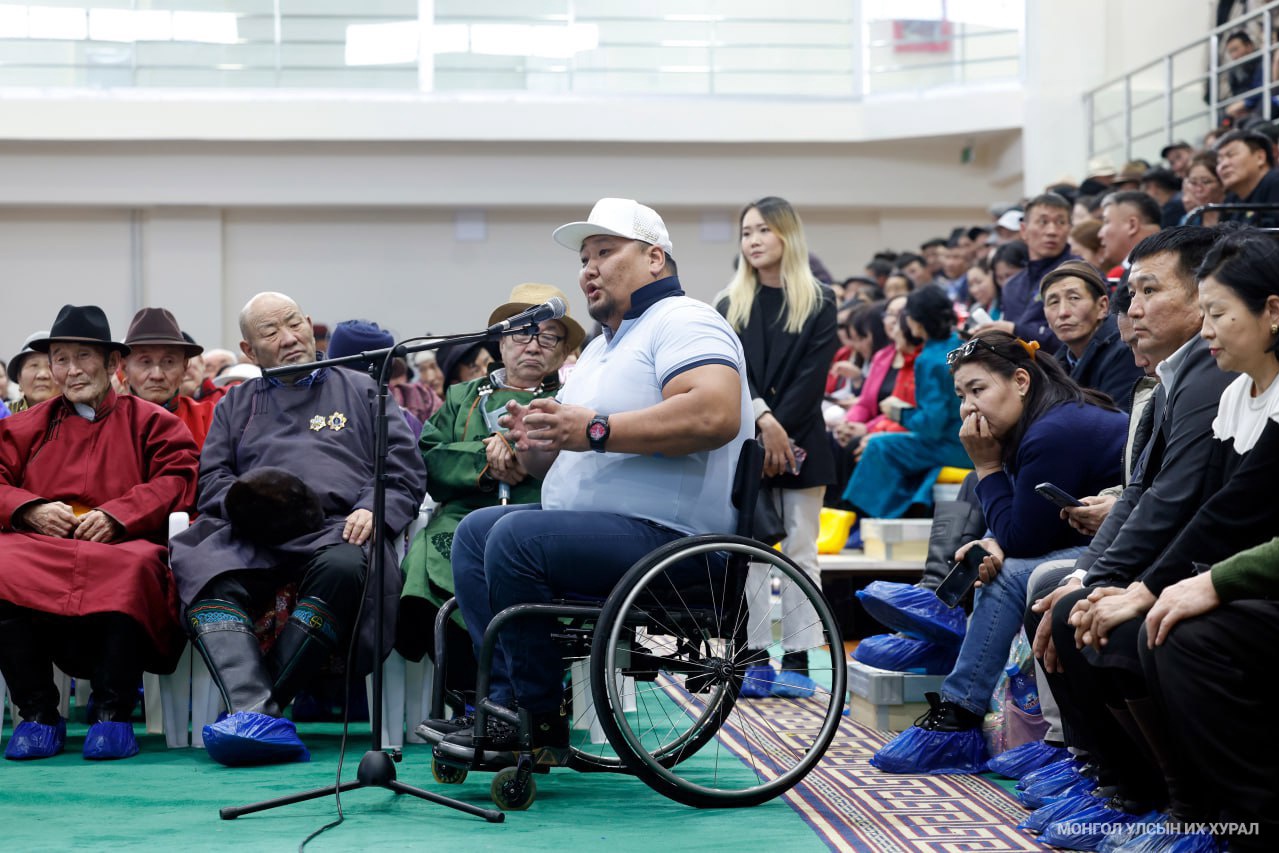 Хөгжлийн бэрхшээлтэй иргэдэд хүртээмжтэй орчин, нөхцөлөөр хангах, шинээр баригдаж буй барилга, байгууламжууд зураг төслөөсөө эхлээд стандартын дагуу орц, гарц бүхий хэсгүүдийг багтаах, цаашлаад хуулиас давсан журмуудаас үүдэж иргэний эрх зөрчигддөг байдлыг таслан зогсоох зэрэг саналуудыг дэвшүүлсэн юм. Мөн энэ үеэр бүс нутаг дахь малын гаралтай түүхий эдийг боловсруулах үйлдвэрийн бүтээн байгуулалт болон "Шинэ хоршоо" хөдөлгөөний хэрэгжилттэй холбоотой асуулт тавьж, саналаа хэлэв. УИХ-ын дарга, гишүүдийн зүгээс аймаг, орон нутгийн бүтээн байгуулалт, малчдад чиглэсэн хууль тогтоомжийн хэрэгжилт, бүсчилсэн хөгжлийн хүрээнд хэрэгжүүлэх зарим арга хэмжээний талаар мэдээлэл өгч, иргэдийн асуултад хариуллаа хэмээн Улсын Их Хурлын Хэвлэл мэдээллийн газраас мэдээллээ.