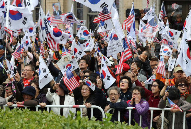 Д.Трампыг эсэргүүцэн жагсагчид “Бид энхтайвныг хүсч байна”, “Дайныг эсэргүүцэж байна”, “Трампын орон зай хэрэггүй” гэсэн уриа лоозон барьжээ.Тэд Дональд Трампын Засгийн газрын Умард Солонгосын цөмийн амбицийн эсрэг баримталж буй дайсагналцсан бодлогыг эсэргүүцсэн хэмээн “Рёнхап” агентлаг уламжиллаа. Вашингтон Пхеньяны талууд харилцан өдөөн хатгалцаж, Солонгосын хойгийн нөхцөл байдлыг тогтворгүйжүүлэн дайн тулааны ирмэгт аваачсанд Өмнөд Солонгосын иргэд Д.Трампыг буруутгаж байгаа юм. Дональд Трамп Өмнөд Солонгос дахь айлчлалаа өнөөдөр өндөрлөж, Хятадын зүг хөлгийн жолоо заллаа.