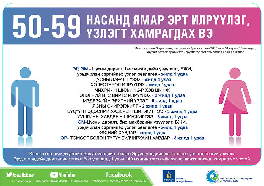 50-59 насанд ямар эрт илрүүлэг, үзлэгт хамрагдах вэ
