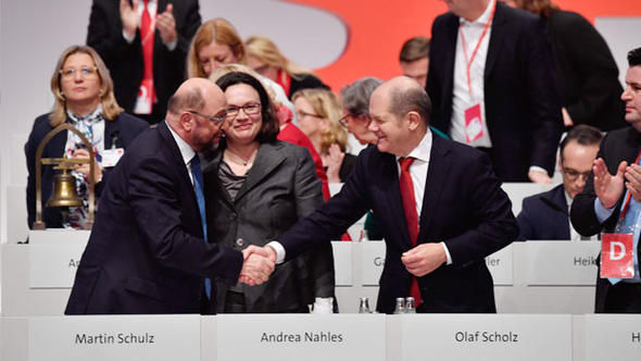 М.Шульц, А.Налес, О.Шолц нар намын их хурал дээр. 2017 оны 12 дугаар сарын 7. Гэрэл зургийг hurriyet.com сайтаас,