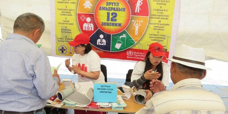 “Цусны даралт ихсэлттэй тэмцэх дэлхийн өдөр”-ийг тохиолдуулан зохион байгуулж буй тус арга хэмжээнд Баянгол, Баянзүрх, Сүхбаатар, Сонгинохайрхан, Хан-Уул, Чингэлтэй дүүргийн Эрүүл мэндийн төв болон Сонгдо, Интермед, Грандмед, Мөнгөн гүүр, Номун зэрэг хувийн хэвшлийн эрүүл мэндийн байгууллагууд оролцож байна.
