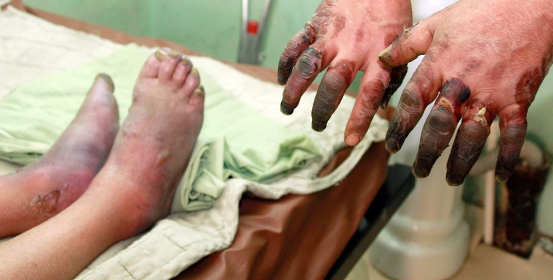 4.Яс, үендээ хүртэл гүн хөлдөлт үүснэ.Гэссэний дараа арьс харлана, хатна, үхэжнэ.