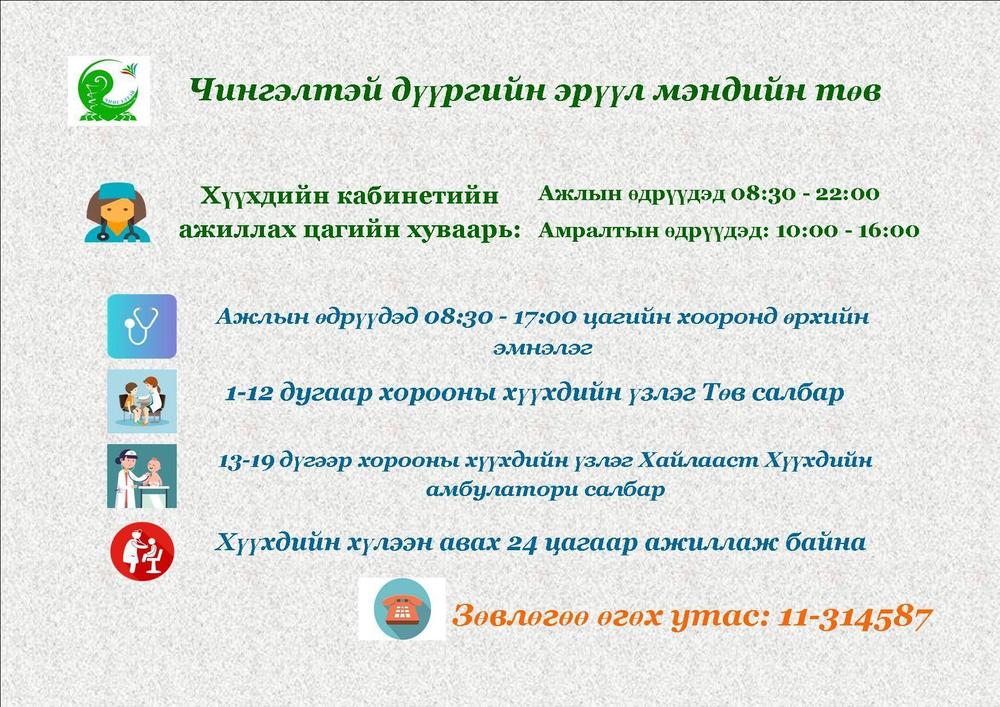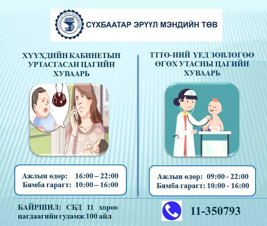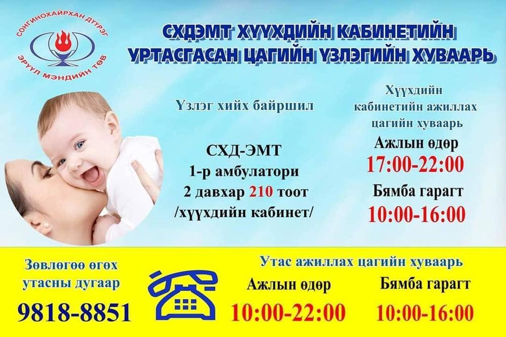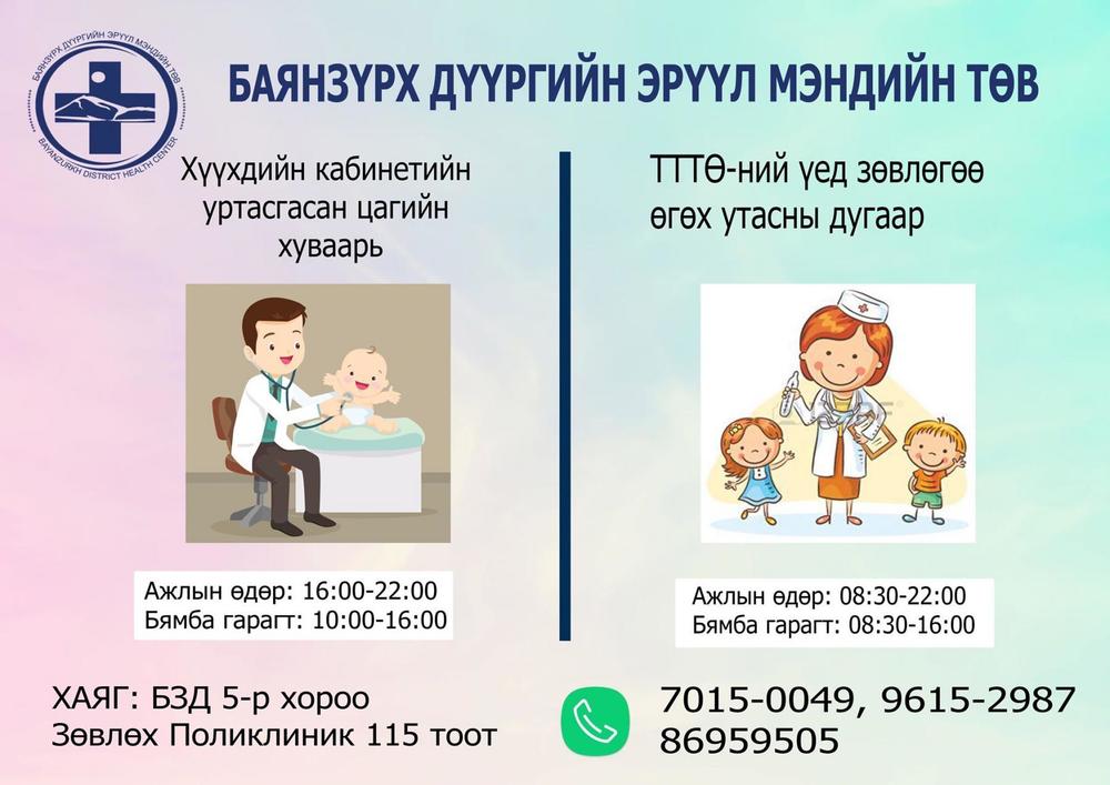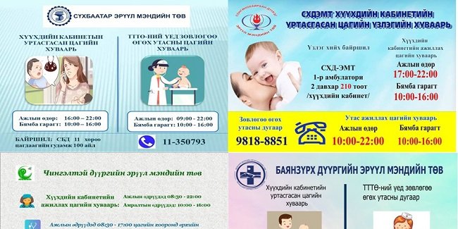 Дүүргийн эрүүл мэндийн төвүүдийн “Хүүхдийн кабинет”-ийн уртасгасан цагийн хуваарь, зөвлөгөө өгөх утасны дугаарууд