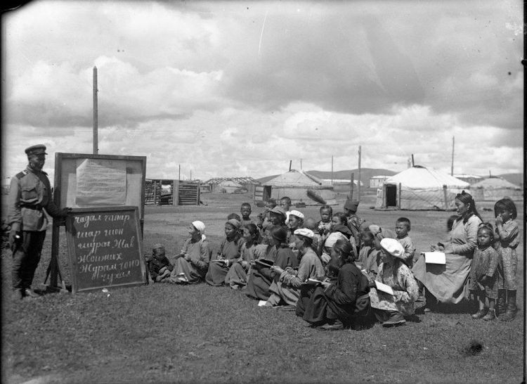 1920, 30, 40-өөд онд хүн амын дунд бичиг үсэг мэддэг нь цөөн бараг нийтээрээ харанхуй бүдүүлэг байжээ. Боловсролтой хүмүүсийн зарим хэсэг нь 37 онд хэлмэгдсэн, тэгээд ч хэтээсээ бичиг үсгийн бүх нийтийн боловсролтой ард түмэн биш байлаа. Тухайн үед намаас юуны өмнө бүх нийтээр нь бичиг үсэгтэн болгох зорилтыг хэрэгжүүлэхэд онцгой ач холбогдол өгсөн байна.