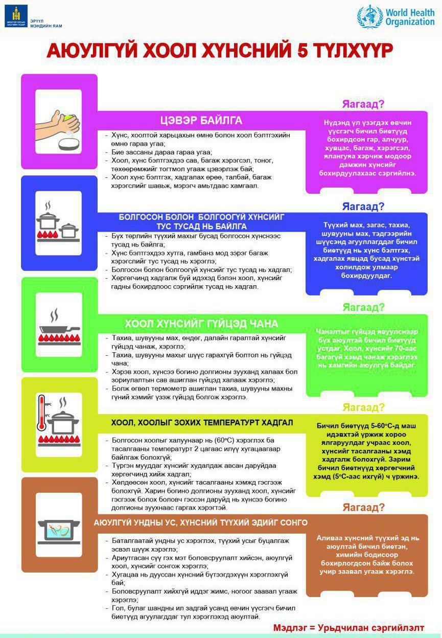 Тухайн дэгдэлтийн хоолны хамаарлыг судлахад тахианы бүрмэл шницель, кимбаб буюу далайн байцаатай будаа, алим, шарсан төмс харьцангуй өндөр эрсдэлтэй гарсан байна. Өвчтөнүүдийн биеийн байдал сайжирч байна. Одоогоор хоол, хүнсний шинжилгээг Мэргэжлийн хяналтын лабораторид хийж байна.