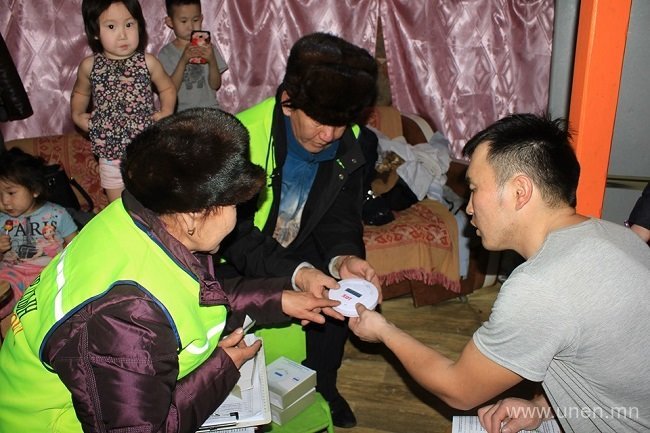 Сонгинохайрхан дүүргийн VI хорооны тавдугаар хэсэг 274 өрхтэйгөөс цахилгаанаар дулаанаа шийдсэн болон түр оршин сууж буй өрхүүдийг хасч, 238 айлд тухайн төхөөрөмжийг суурилуулах юм. Эдгээрийн хоёр нь нэг хашаанд, гэрт амьдардаг Б.Батмагнай, Б.Батмандах гэсэн ах дүү нарынх байлаа. Гэрт угаарын хий мэдрэгч төхөөрөмжийг суурилуулахдаа тоононоос доош 30 см зайд багана эсвэл унинд дээр дурдсанаар бэхэлж байрлуулах ёстой. Энэ дагуу тухайн хоёр айлд төхөөрөмжийг суурилуулж, заавар зөвлөгөө өгсөн юм. Төхөөрөмж дээрх хот гэсэн үгийн доод хэсэгт ногоон гэрэл 30 секунд тутамд анивчвал хэвийн ажиллаж буйг шар гэрэл асвал төхөөрөмжид алдаа эсвэл гэмтэл гарсныг илтгэх юм. Харин угаарын хийн ялгарал аюултай хэмжээнд илэрсэн тохиолдолд улаан гэрэл анивчиж, дохио дуугарна. Энэ тухай тэдэнд танилцуулж, дохиолол дуугарч, төхөөрөмж дээрх тоо 30-70 байвал хаалга, цонхоо нээж, цэвэр агаар оруулах ёстойг санууллаа. Хэрэв төхөөрөмж удаан дуугарч, агаар дахь угаарын хийн хэмжээ өндөр заасан тохиолдолд дээрх арга хэмжээг авахаас гадна түргэн дуудахын зэрэгцээ бүх гишүүдийг гадаа гарахыг зөвлөж, хариуцсан байгууллагын хүмүүс ирж, тухайн нөхцөл байдалд арга хэмжээ авах хүртэл байшин болон гэр рүү буцаж орж болохгүйг анхаарууллаа.