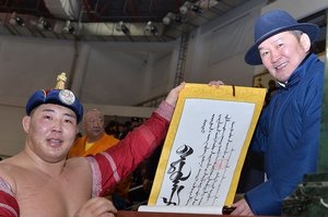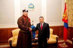 • Ерөнхийлөгчийн нэрэмжит үүрд хадгалагдах цомыг Монгол Улсын харцага Оргихын Хангайд гардуулж өглөө