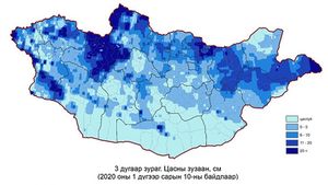 Нийт нутгийн 70 орчим хувьд цасан бүрхүүлтэй байна